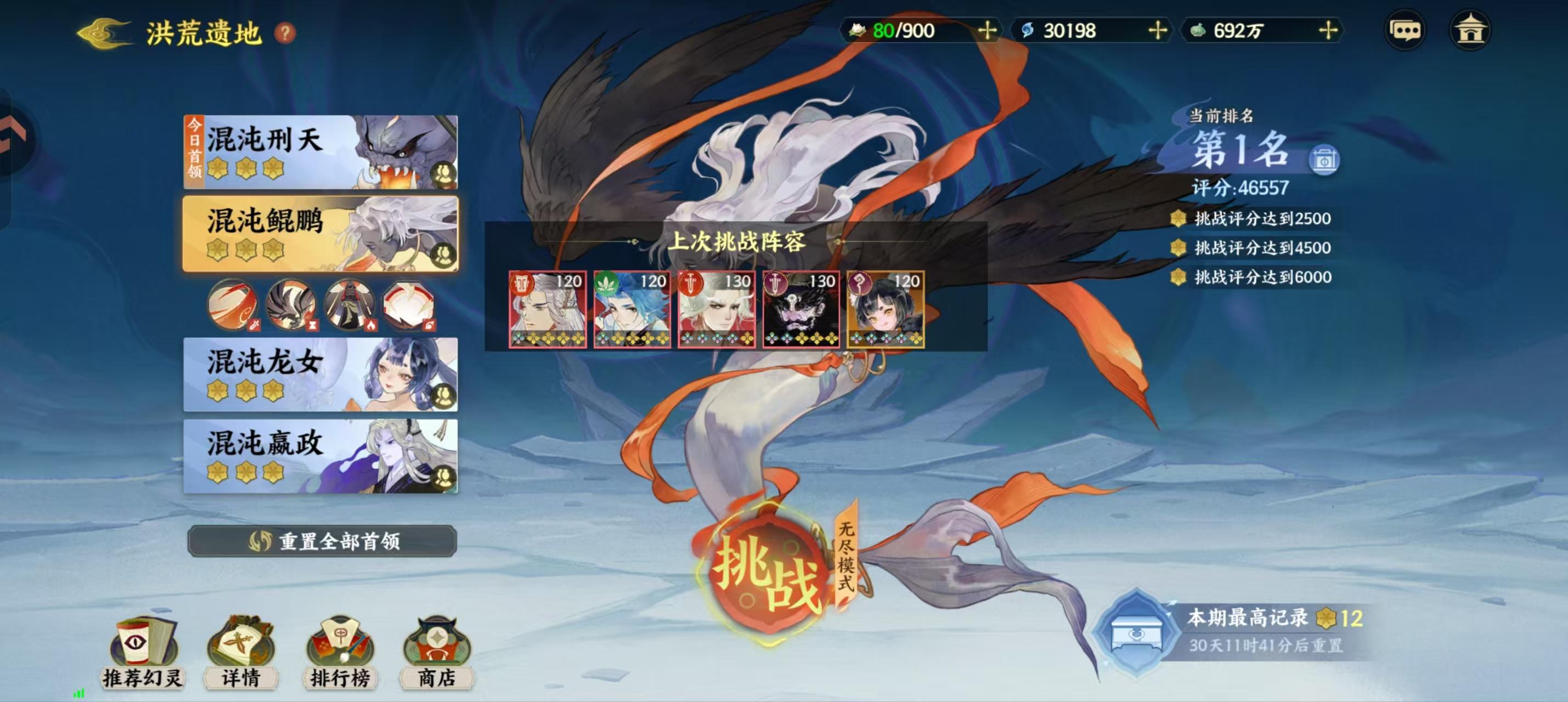 鲲鹏是最简单的,所有角色全部普攻,开自动打就可以,分数也比较稳定。