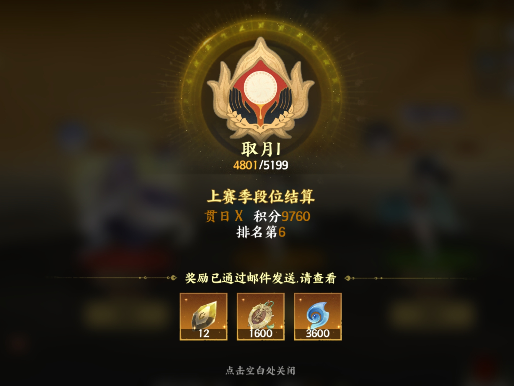这个赛季应该4次周结算,一次赛季结算。拿了3次周结算前十,赛季结算第6。
