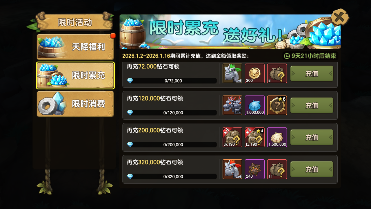 3.维护后 至 2026年1月16日6:00开启登录有礼、限时累充以及限购礼包活动,详情: 【限时活动】1月2日限时活动