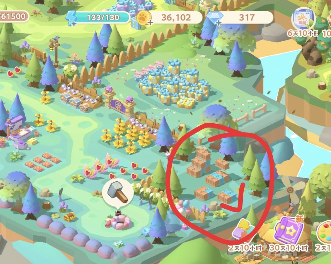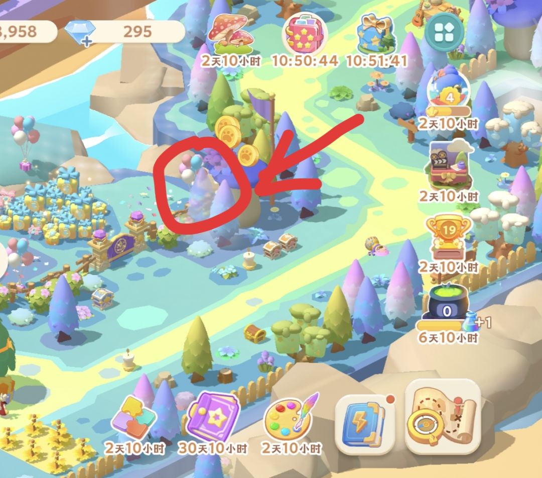 首先是这里面所有的气球和风车装饰和田地点击掉落物品
