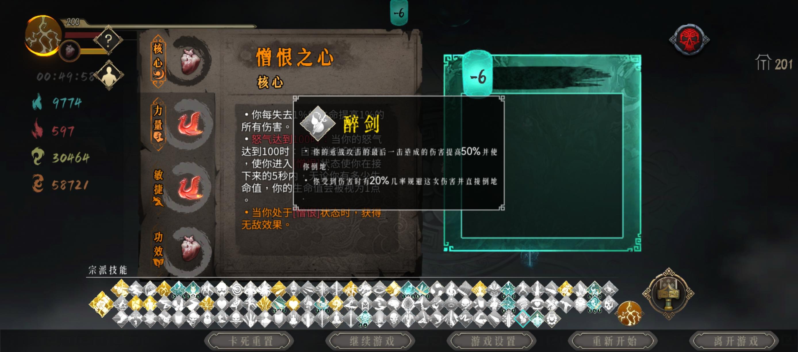 大佬们,这咋整啊,萌新无尽刚解锁,没有想太多,选完沉重一跤,又点了一个醉剑,打几下木桩子,快把自己打死了