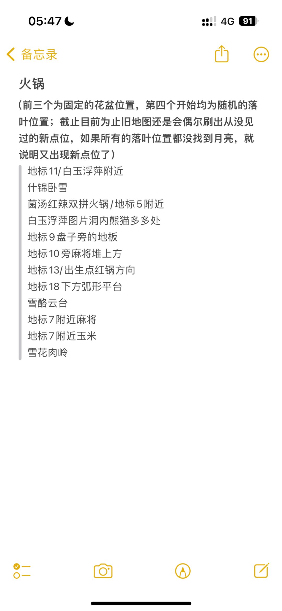 从大月亮功能刚出的第一周的某一天开始发攻略到现在了,还记得刚出大月亮的时候不知道哪里看攻略以至于一度费很多时间在找大月亮上。最开始很多人在热门频道里互相报点位,为了让我的朋友能一眼看到大月亮的位置,我突发奇想地开始用照片墙发点位攻略。