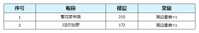 2、玩家的多次回复视为单次参与,楼中楼回复和单独开帖回复视为参与无效;