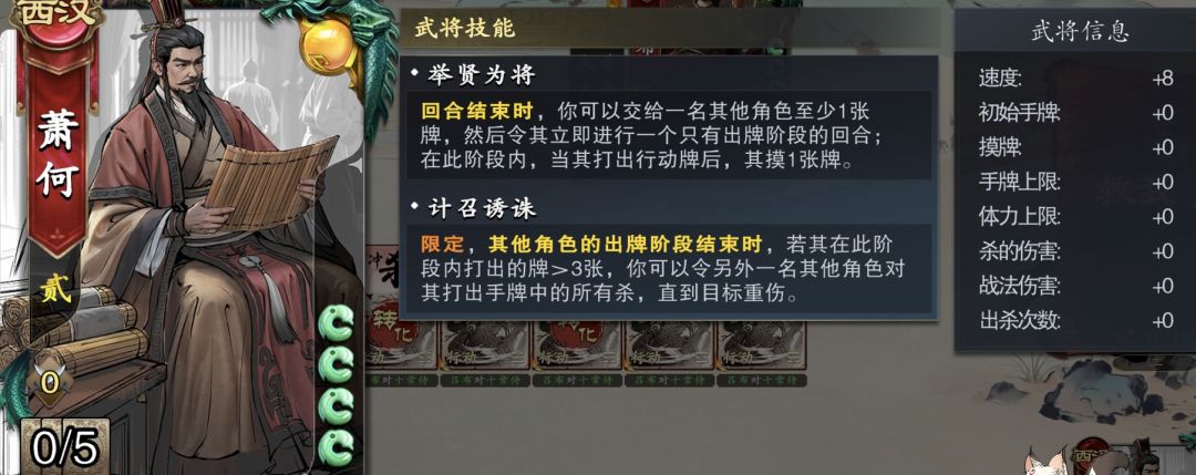 说一下流程,萧何给回合于熔炼将,熔炼将发动九伐中原,将自己变成1血,触发一技害3贤,把手牌全部给吕布,吕布一直出杀就行了,当然熔炼将的吕布无双飞将换成夏侯惇更好,这样获得的杀更多,因为3次给牌。