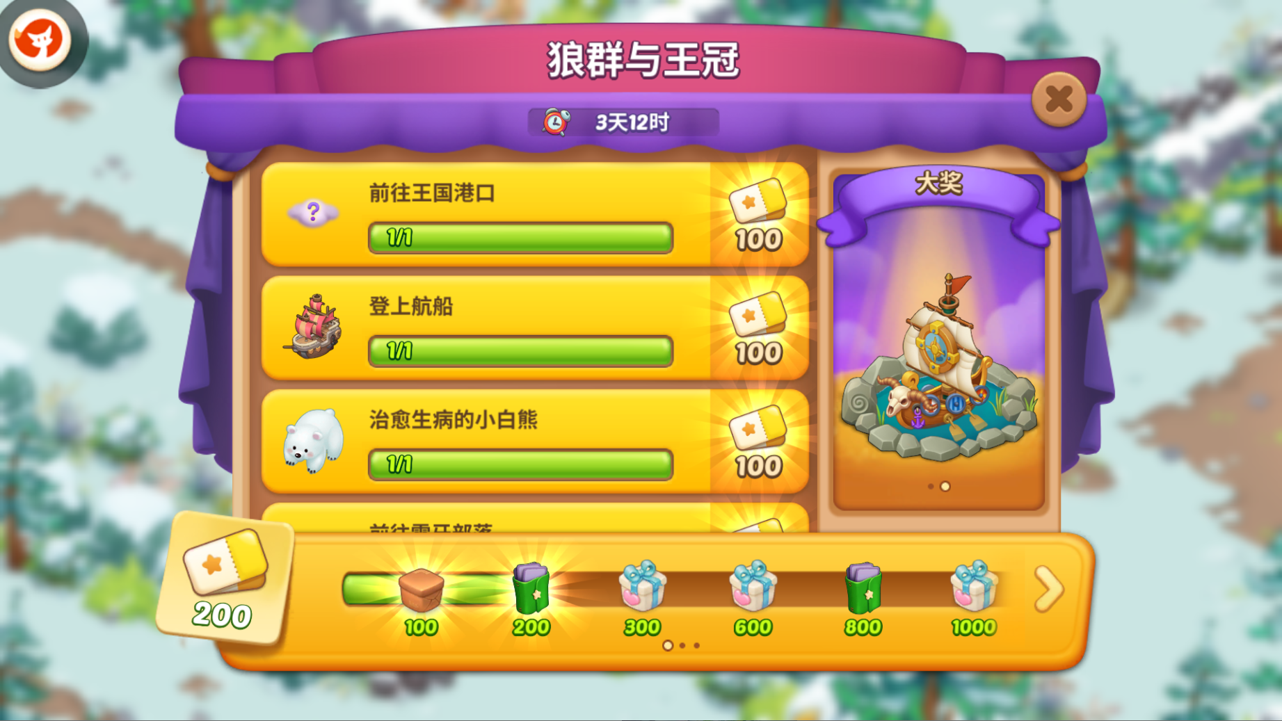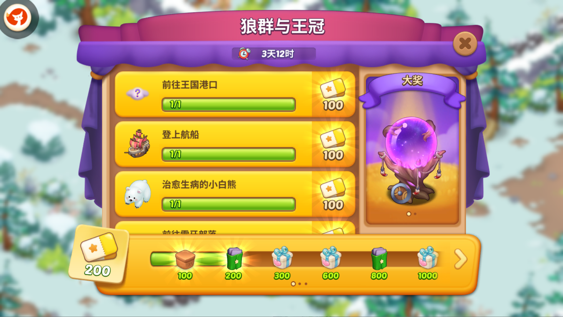 极光水晶球*1、雪牙航船*1