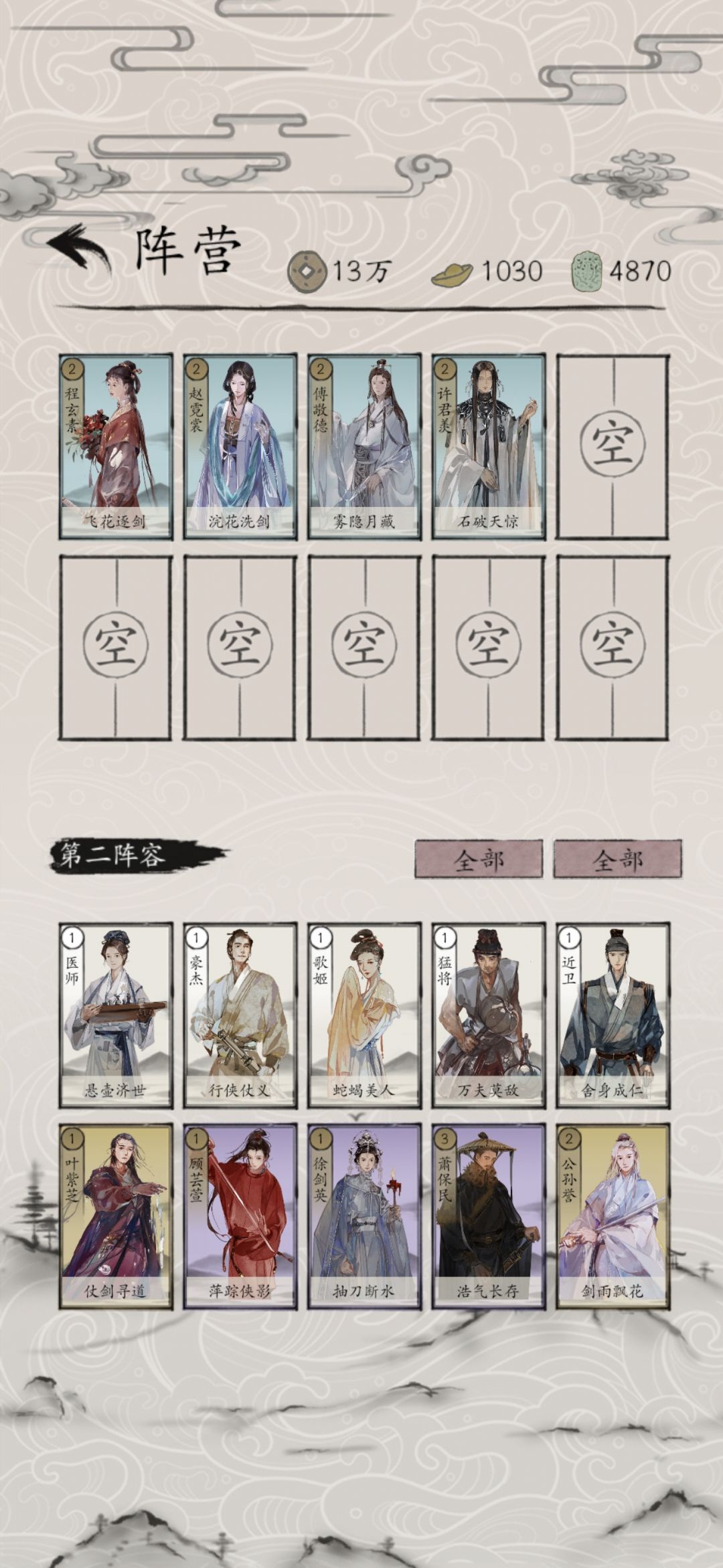 祝延庆和周剑林都是武林主流体系(纯真气与剑气双修)的必带卡,如只玩偏冷门的真伤与负面体系可以不考虑携带,除此之外几乎是所有武林卡组必带的神卡。