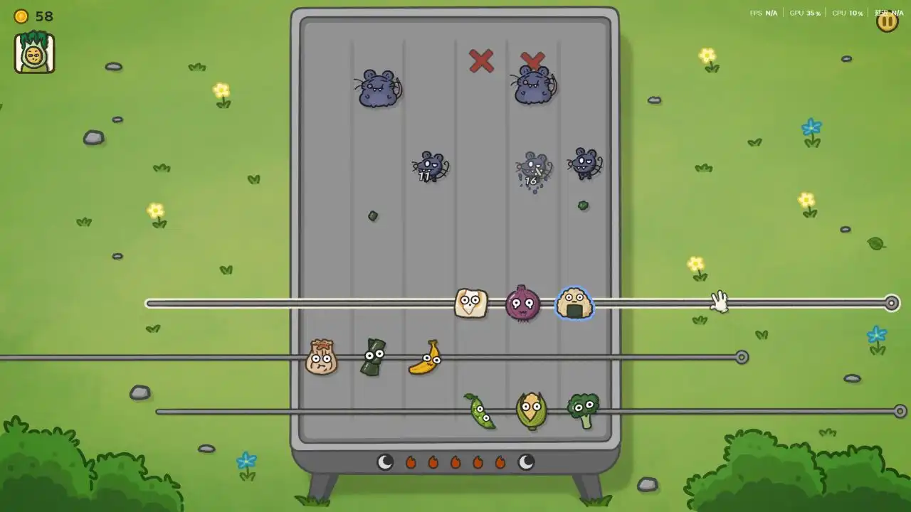 游戏的基础玩法就是我们通过摆放和不断调整烧烤串的位置,来应对不同路径袭来的鼠鼠们,没个波次结束后则会获得金钱奖励,可以用金钱从随机刷新的商店中够买各类美食,两个品质相同的美食可以进行合成、升级,除了美食之外还有各种“调味料”为我们提供各种buff。