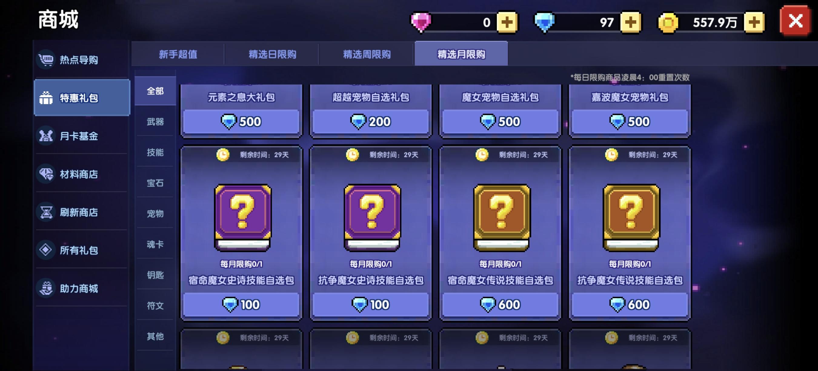首先是月限购商城,这是最值也最需要换取的资源。