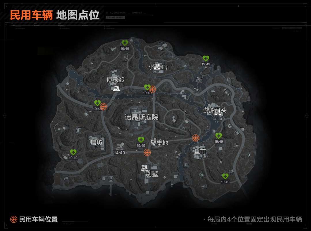 每局内有4个固定位置出现民用车辆,可以搜刮车辆的后备箱。