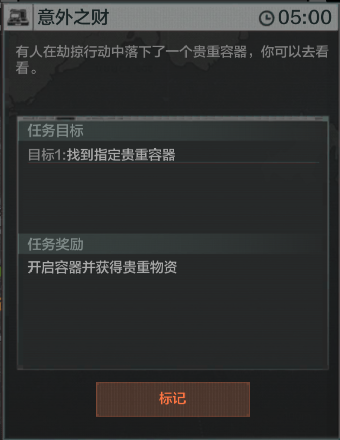 先锋需要在提示范围内找到一个指定容器并完成解锁,容器内将有一把万能钥匙和高价值物资。