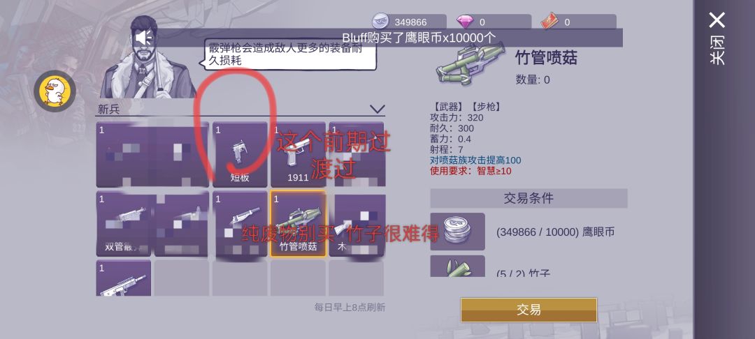 在加入鹰眼后 很多新兵不知道怎么弄钱