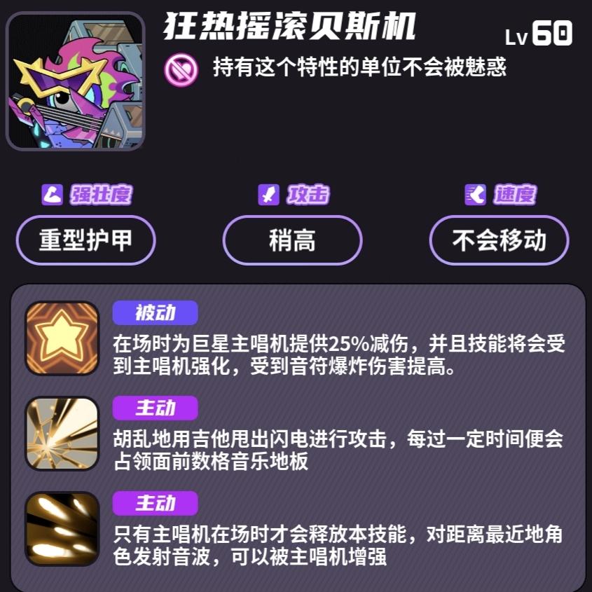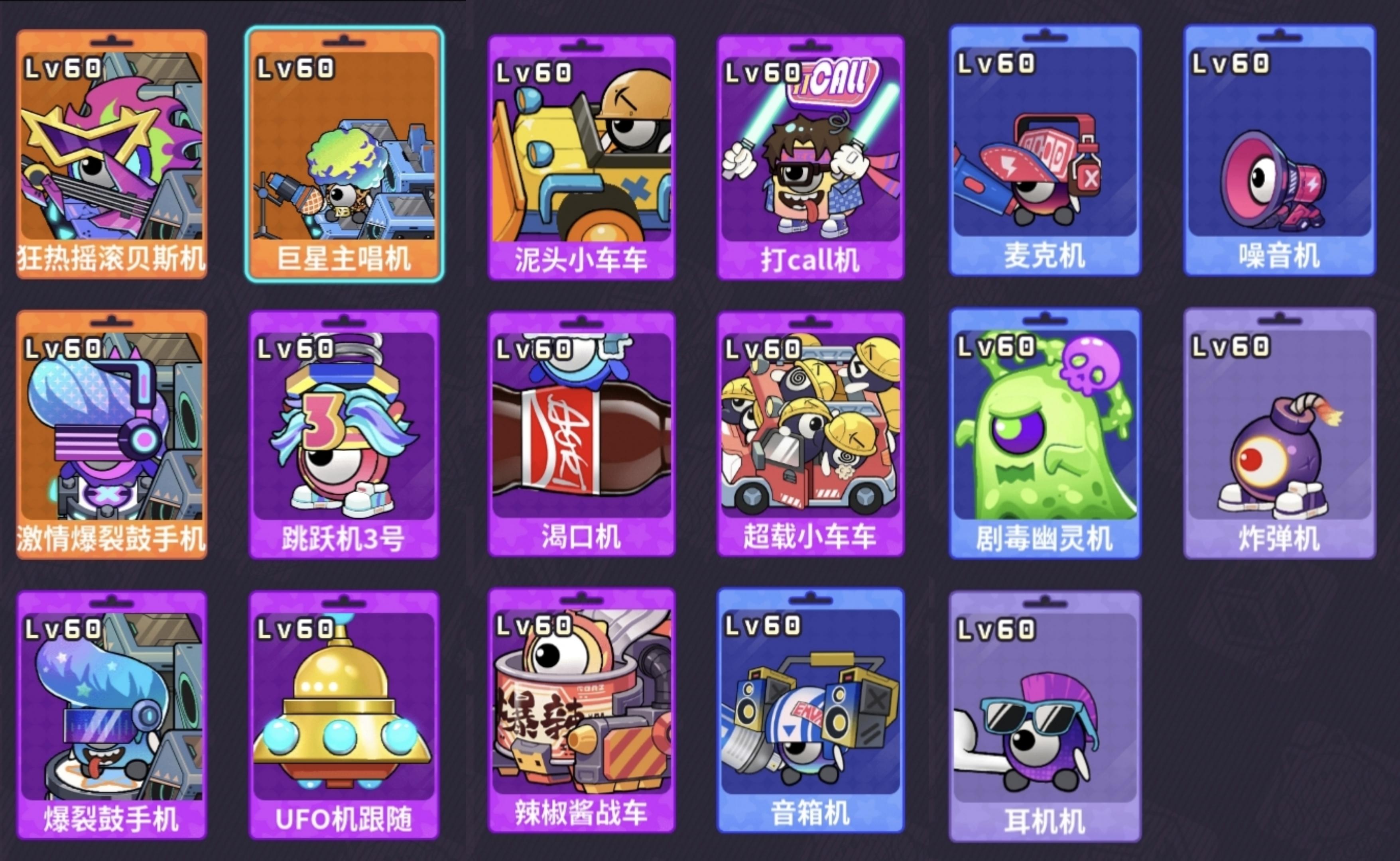 ③各类精英摇滚机:在场上时会对相应微型机加buff,锁定当前气氛值,同时攻击我方角色,血量很厚但不会移动,可以在压力小时进行集火攻击(看着体积大,实际上只占一格)。