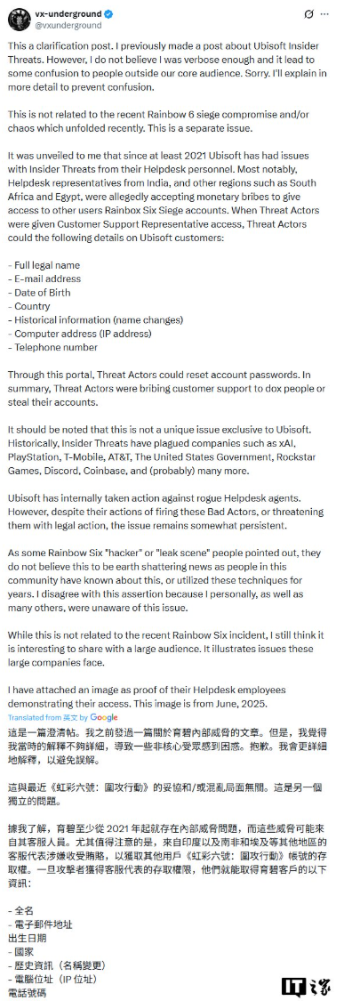 事情是这样的,有专业网络安全组织曝光,这家公司的外包客服团队里藏着“内鬼”!从2021年开始,印度、南非这些地方的外包员工,居然拿金钱当筹码,偷偷把《彩虹六号:围攻》玩家的真实身份信息、IP地址这些敏感数据,全卖给黑客了!这哪是客服啊,分明是给黑客递刀子的内奸啊,玩家的隐私就这么被当成商品卖,想想都后背发凉!