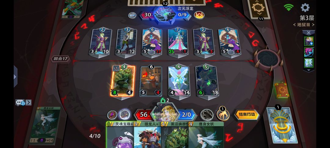 打法思路:每个回合都要把法力上限全部转换为法力值,确保法力上限都只有0。费用小的卡要么打出去,要么献祭,确保手牌上的卡都是高费的打怪。