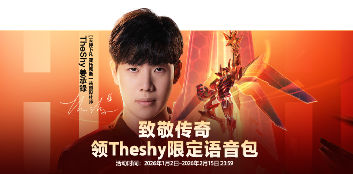 2026年1月2日-2026年2月15日23:59,召唤师登录游戏完成活动任务即可领取TheShy语音包奖励~