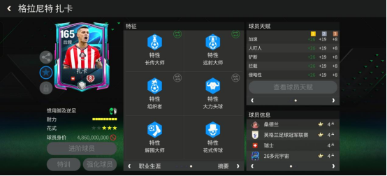 扎卡,瑞士国家队队长,现效力于桑德兰,曾在阿森纳担任中场核心。他以精准的长传、出色的战术意识和强大的精神力著称,是典型的中场节拍器。在游戏中,他同样是一位传球与防守兼备的指挥官型球员。