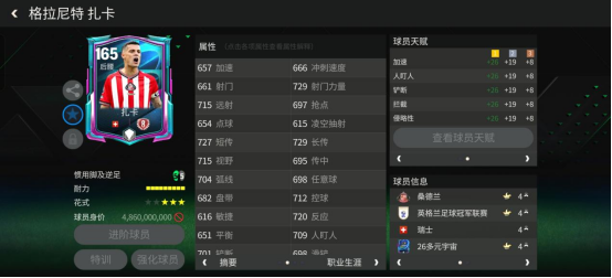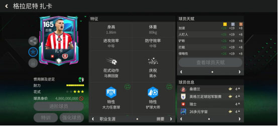 球员天赋:叹息之墙(加速、人盯人、铲断、拦截、侵略性)