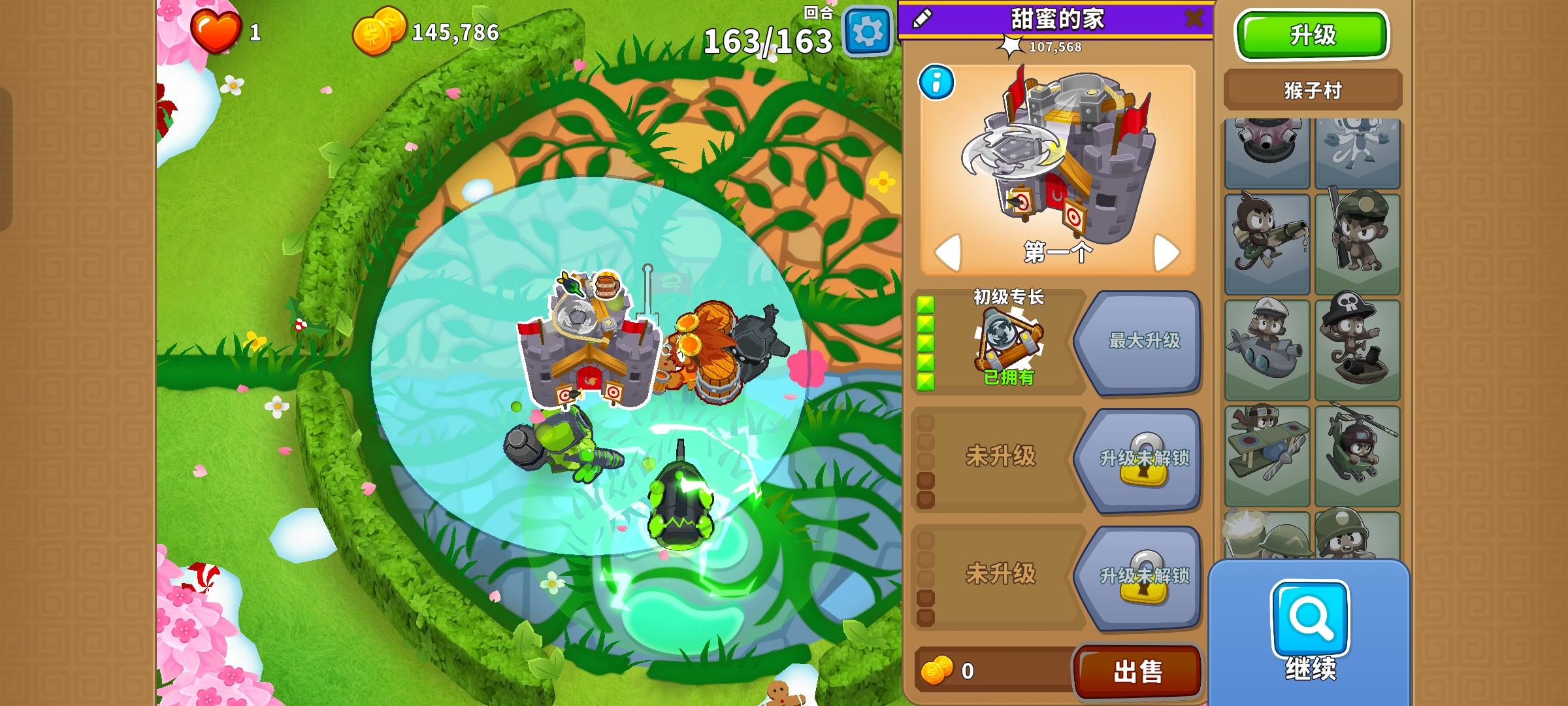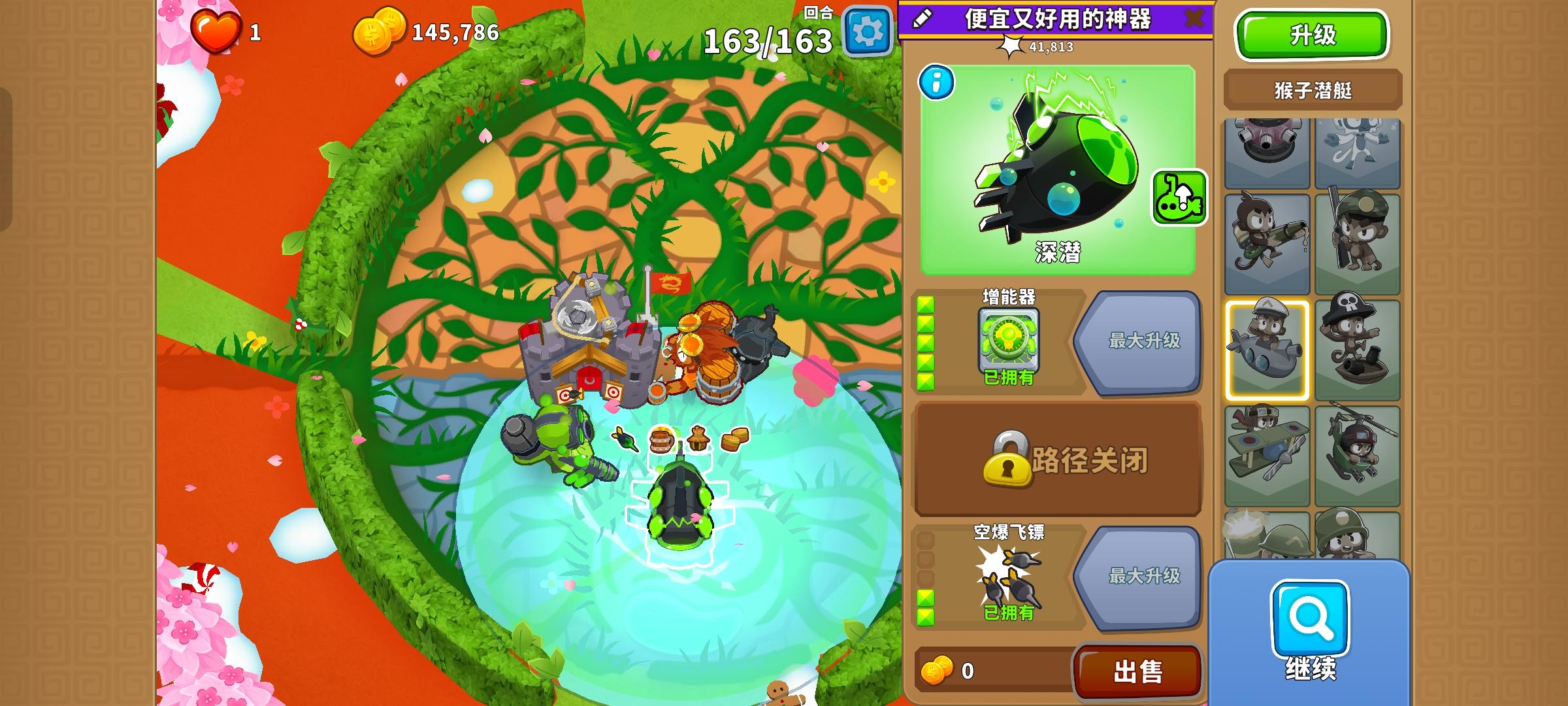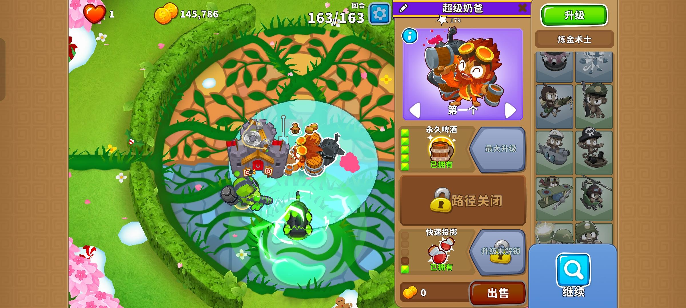 还有非常完美的配合:在图上位置放下520胶水炮手,502潜艇,500猴子村和501炼金术师。这套组合也能有强大的作用!