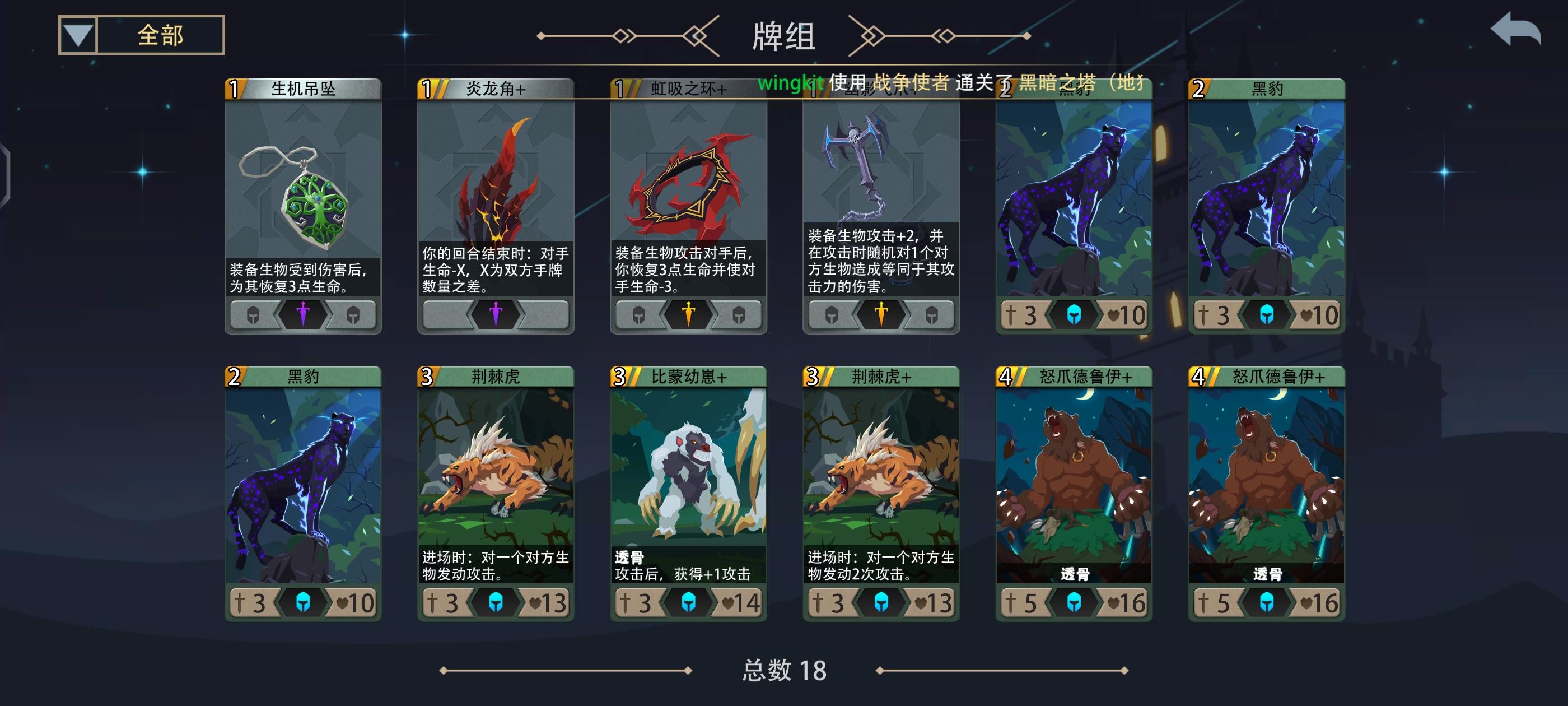 装备主拿魔蛇手套/毁灭之斧/幽影飞爪 只拿到一张幼崽的情况下也可以拿生机吊坠 灵魂宝珠保一下比蒙站场 回响权杖也很好用 可以复制多重打击 狂野强袭等卡保证每回合输出