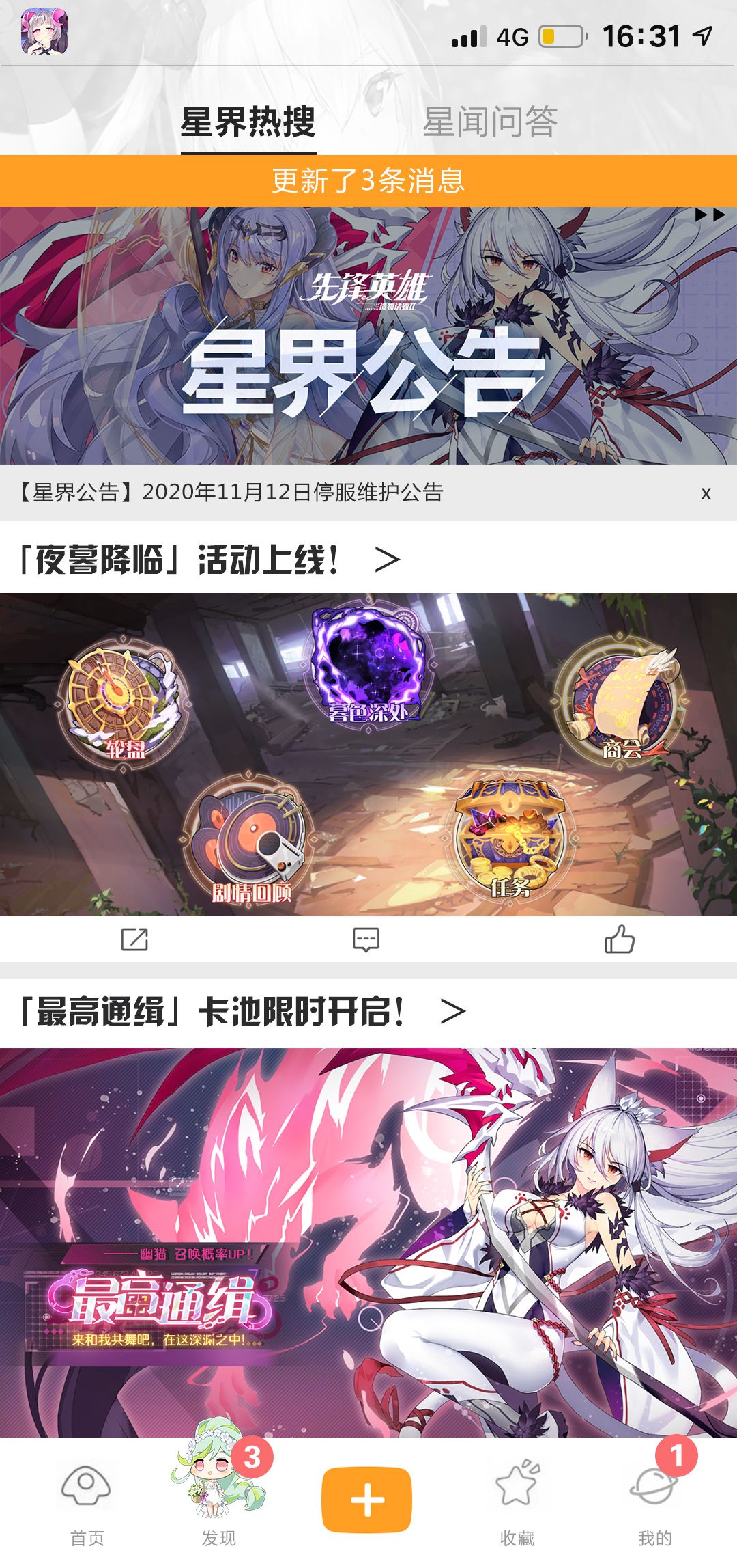 为了保证星界的正常运行,给大家带来更好的冒险体验,时空管理局计划在2020年11月12日09:00-15:00进行停服维护,开启新版本——「夜暮降临」。