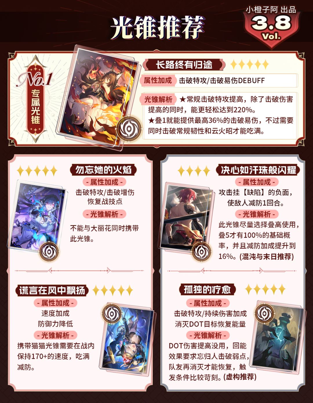 这一期橙子做的是中段up限定五星角色忘归人、灵砂的抽取建议,小伙伴们可以根据帖子选择抽取哪个角色,或者看一下如何去培养。