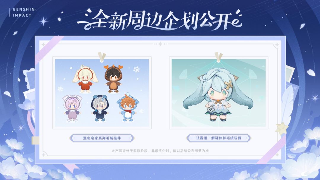 此次新品阵容丰富多元,既有「漫冬宅家」系列毛绒挂件带来治愈陪伴感,也有细节拉满的精品手办与玩偶:珐露珊・解谜伙伴毛绒玩偶还原角色灵动特质;