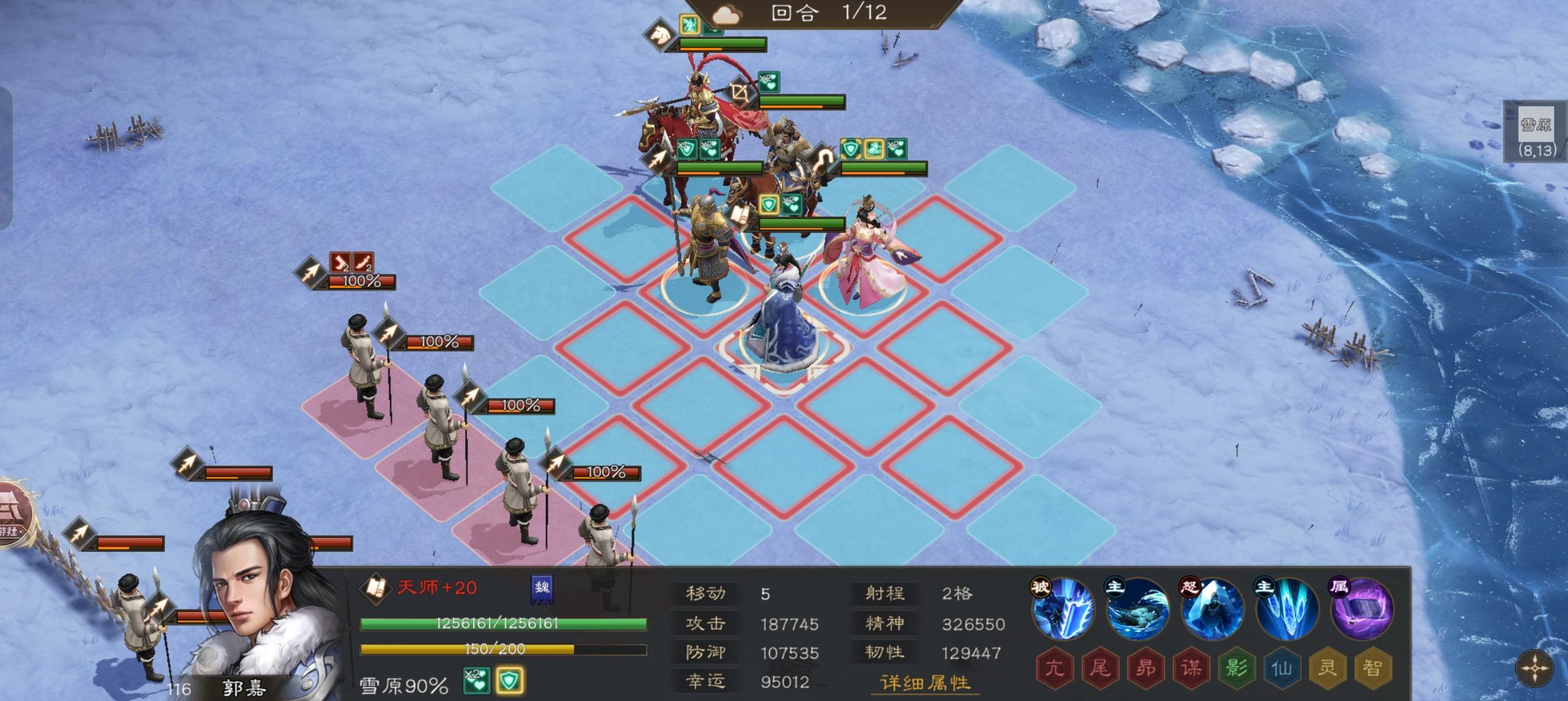 评价:曹操从原来的最大提升25%我方主要攻击属性(精神或者攻击)变成了35%(二级觉醒加霸气后)以及40%(六级觉醒加霸气后)这个提升还是比较大的。下面是我的二级觉醒曹操对沙盘2050层的郭嘉的加成