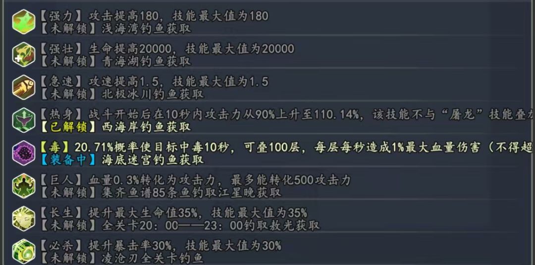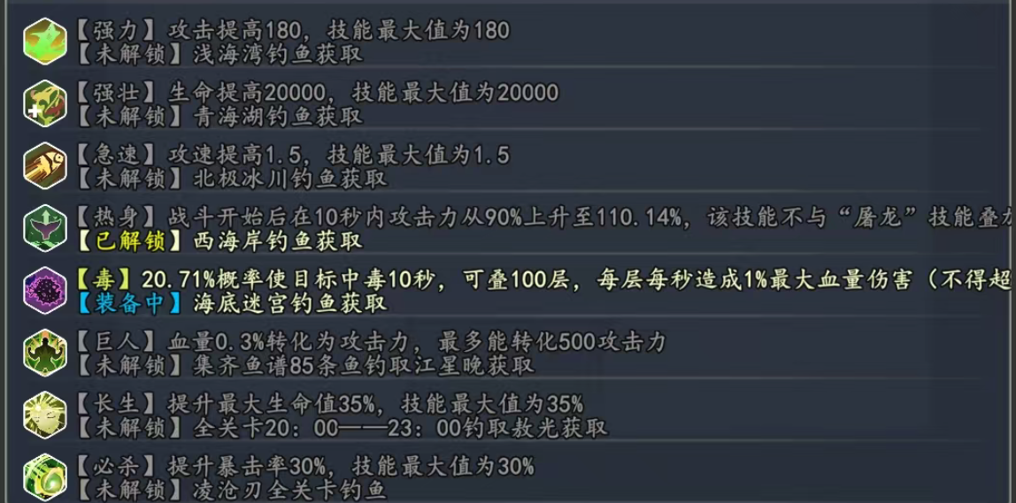 每张地图有自己的独特技能,技能品质=鱼的品质与关卡等级挂钩