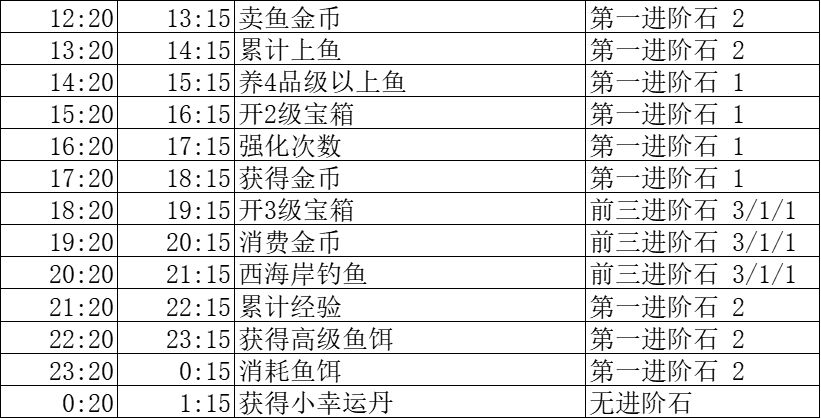 获得pk名额之后,下午4点到6点30好像,钓鱼获得积分,每个品质积分不一样,累计分数最高的获得今天鱼王资格。