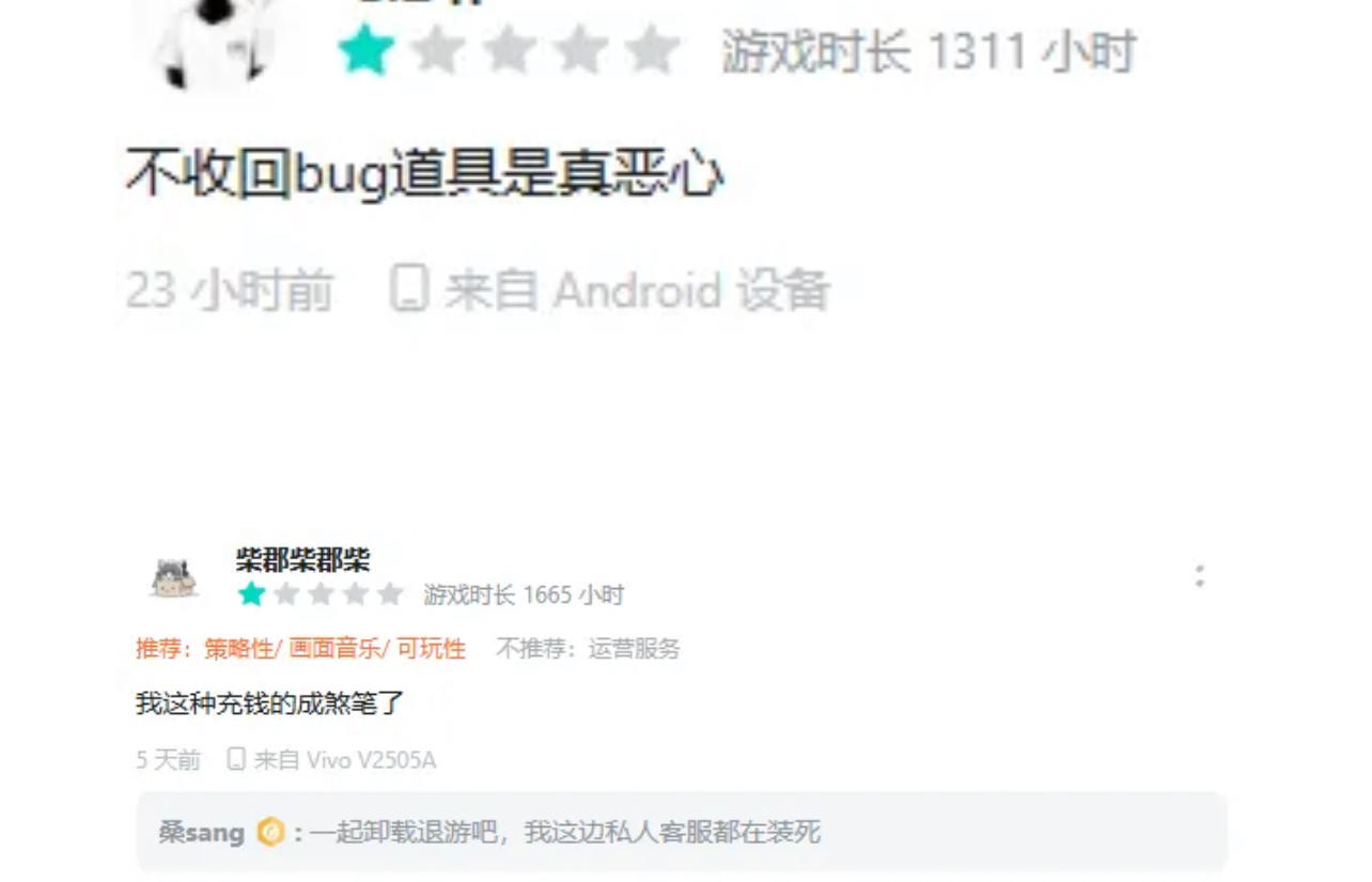 这个决定立刻引起了巨大的争议,大量高氪玩家很不满,认为不回收道具破坏了游戏公平,让他们长期投入严重缩水,游戏页面很快被差评刷满。