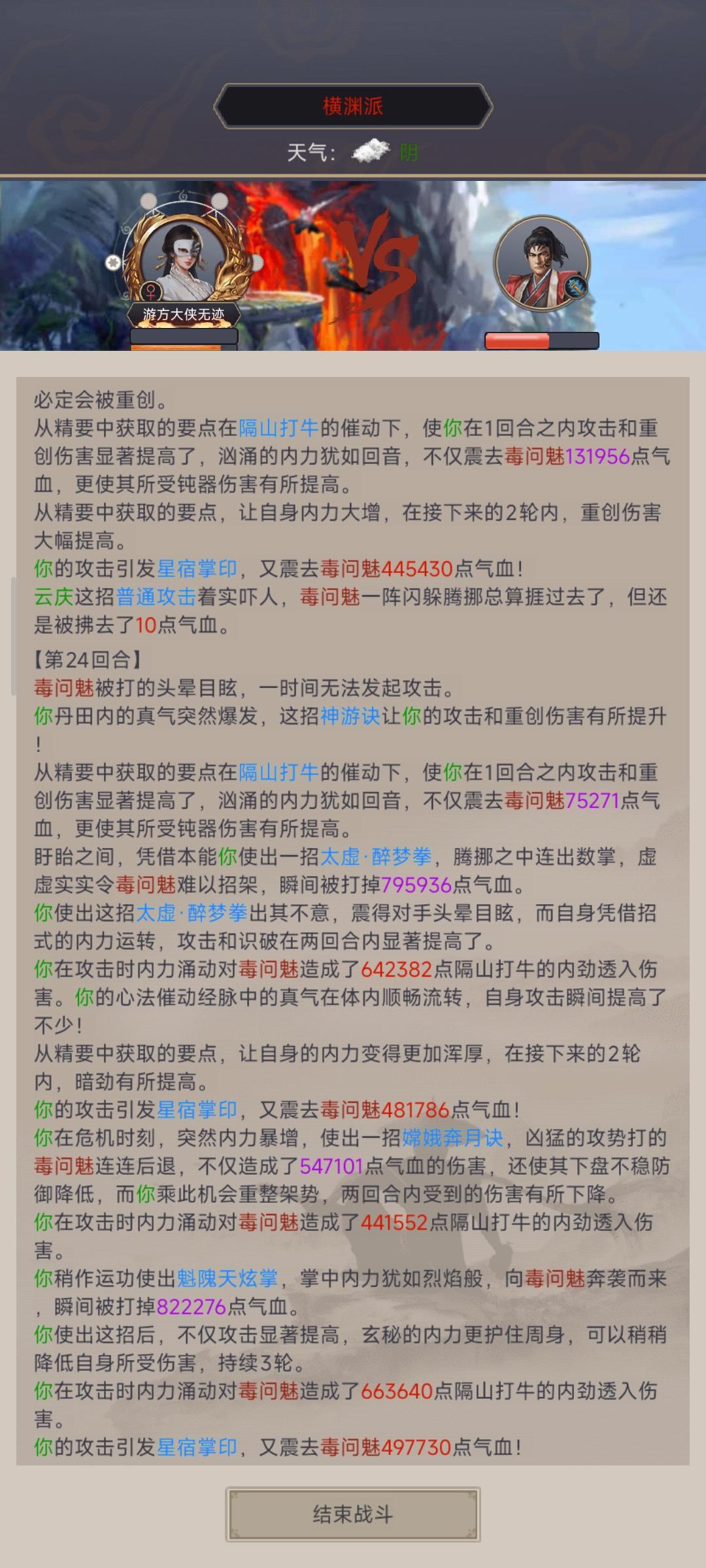 第2回合打出归星掌,第3回合自己打龙吸水触发星宿,千涛不触发星宿