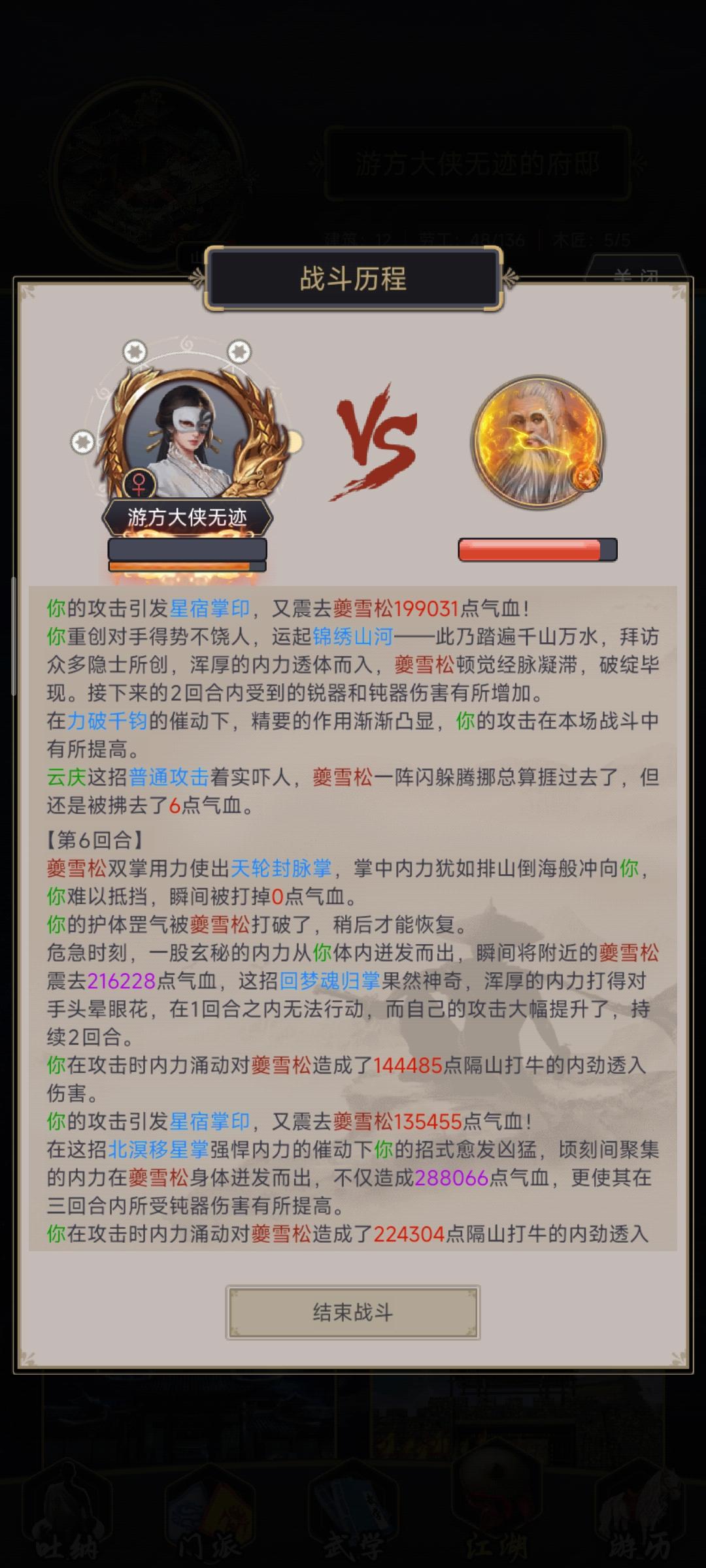 第5回合打出归星掌,第6回合回梦触发星宿