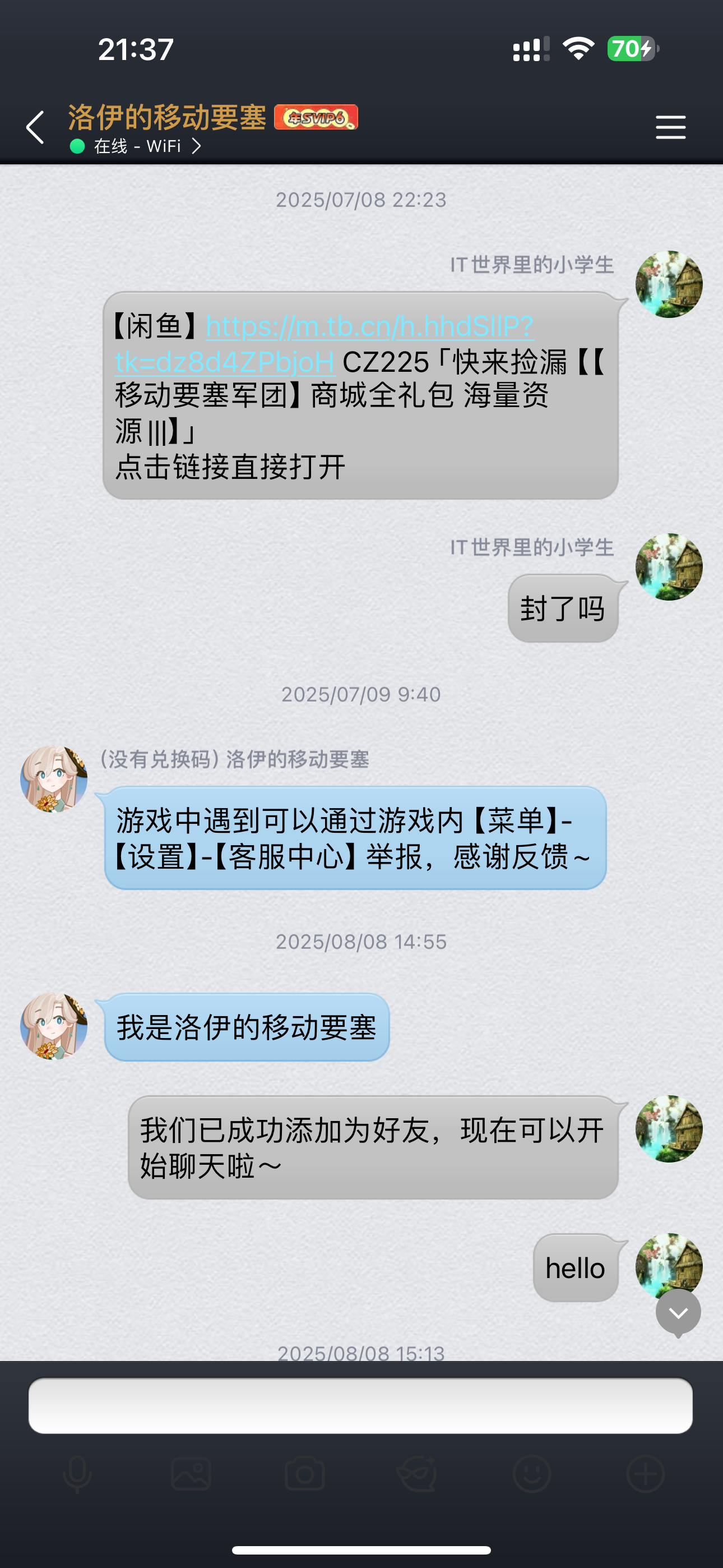 同时也有很多邪修走了咸鱼,本人也跟官方积极反馈,下面的当时的聊天记录。同时在taptap,微信玩家群,鼓励大家支持正版游戏,远离邪修。微信群有很多小伙伴问淘宝的事情,大家都是热爱游戏的,都在跟大家宣传正版,淘宝必封。