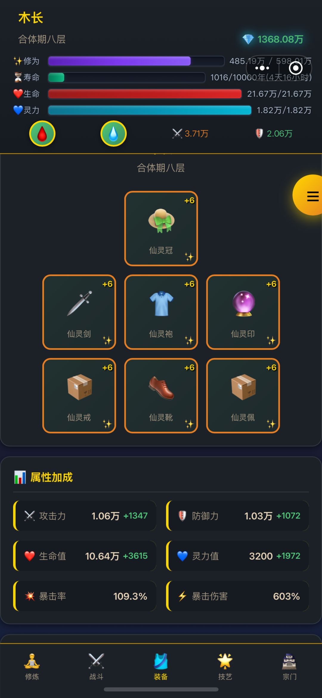 9.仙侣 有寿命有材料就炼,直接炼灵品缘分丹,建议升到神灵再考虑升级,因为升阶后等级减半