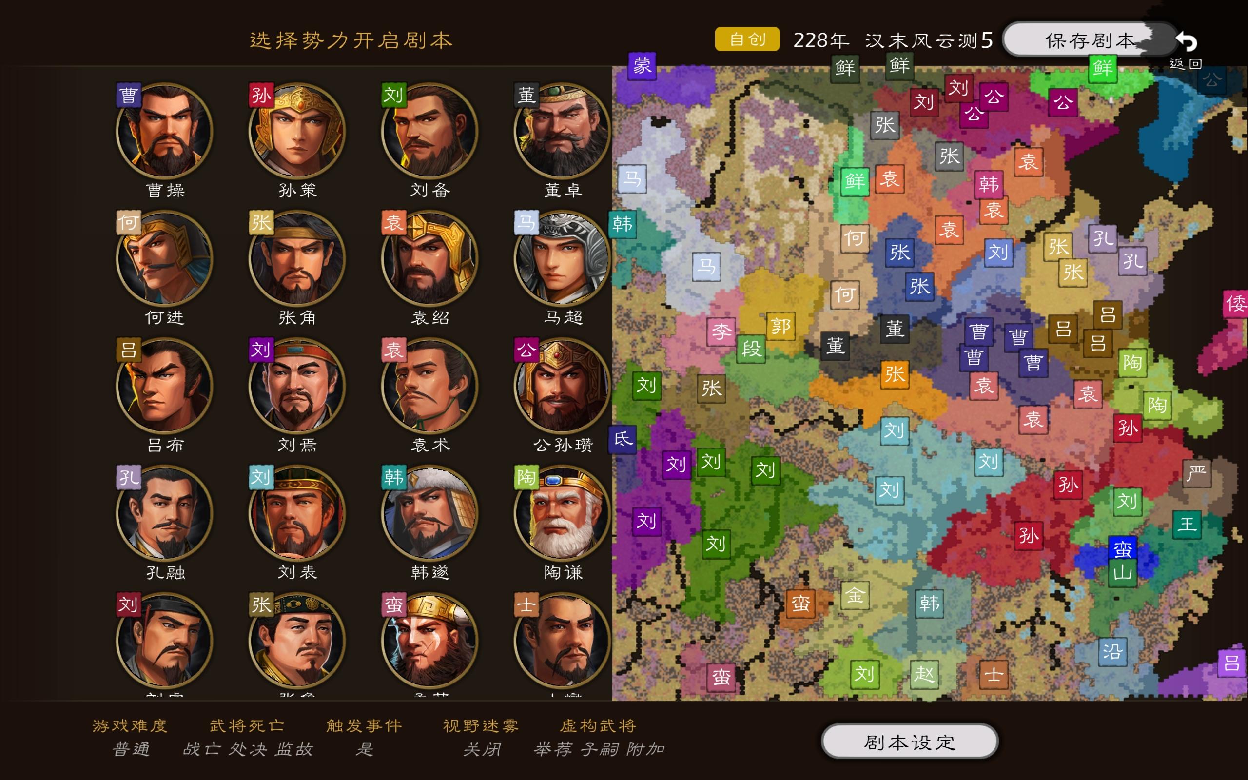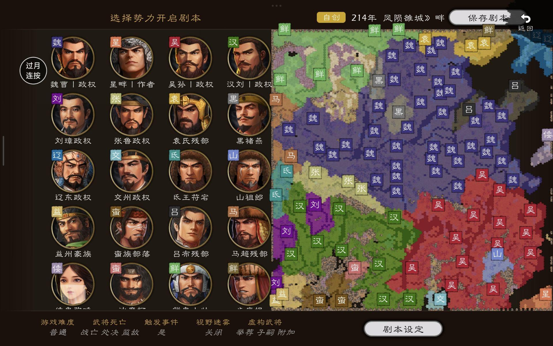 【剧本特色】本剧本里,可以使用刘备或吕布一步步蚕食其他势力,不断壮大,最后变成复兴霸业。