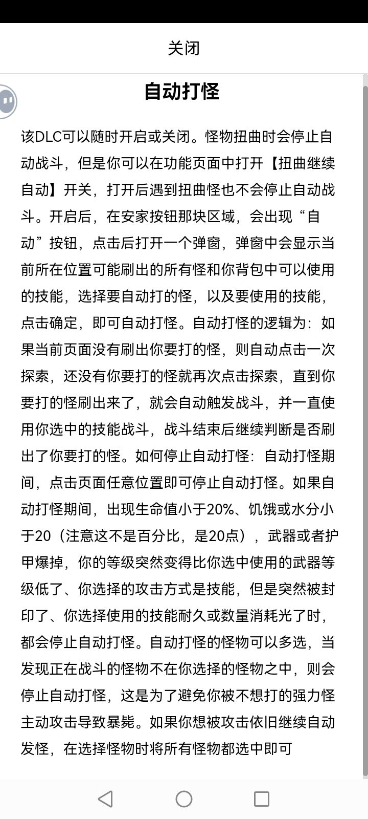 2、一些技能能被选中,但战斗内用不了或者开局不满足使用条件,刷那些出现概率低,并且目前无法用单一技能挂机的怪时,可以选中这种技能去刷,进入战斗后不会进行任何行动,防止浪费物品和掉血,