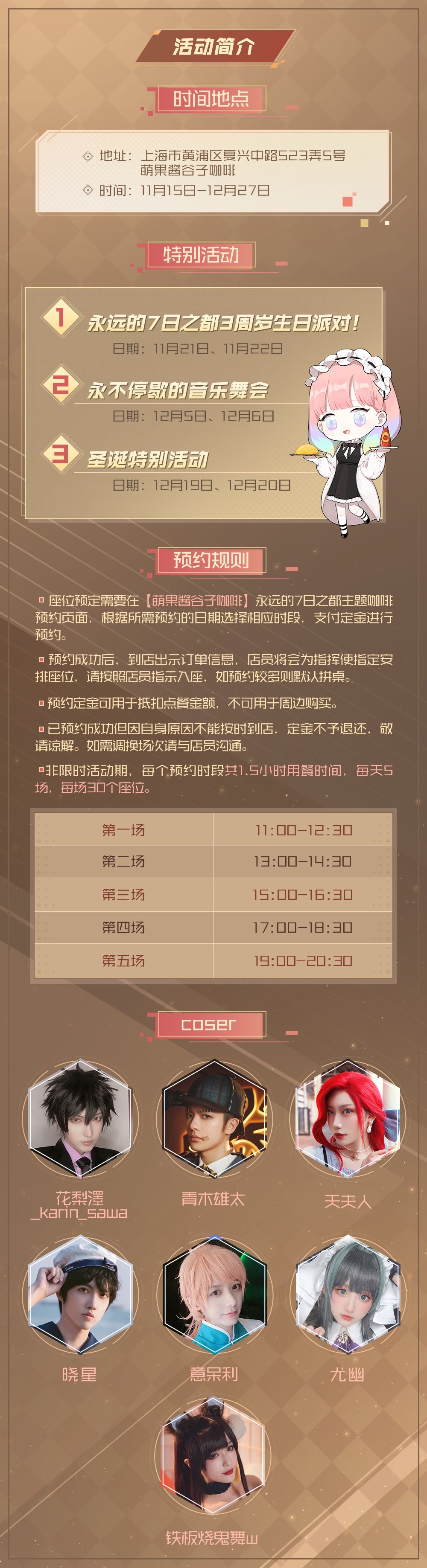 11月21、22日咖啡厅将举行特别活动“永远的7日之都3周岁生日派对”,指挥使还可以与coser现场互动哦!