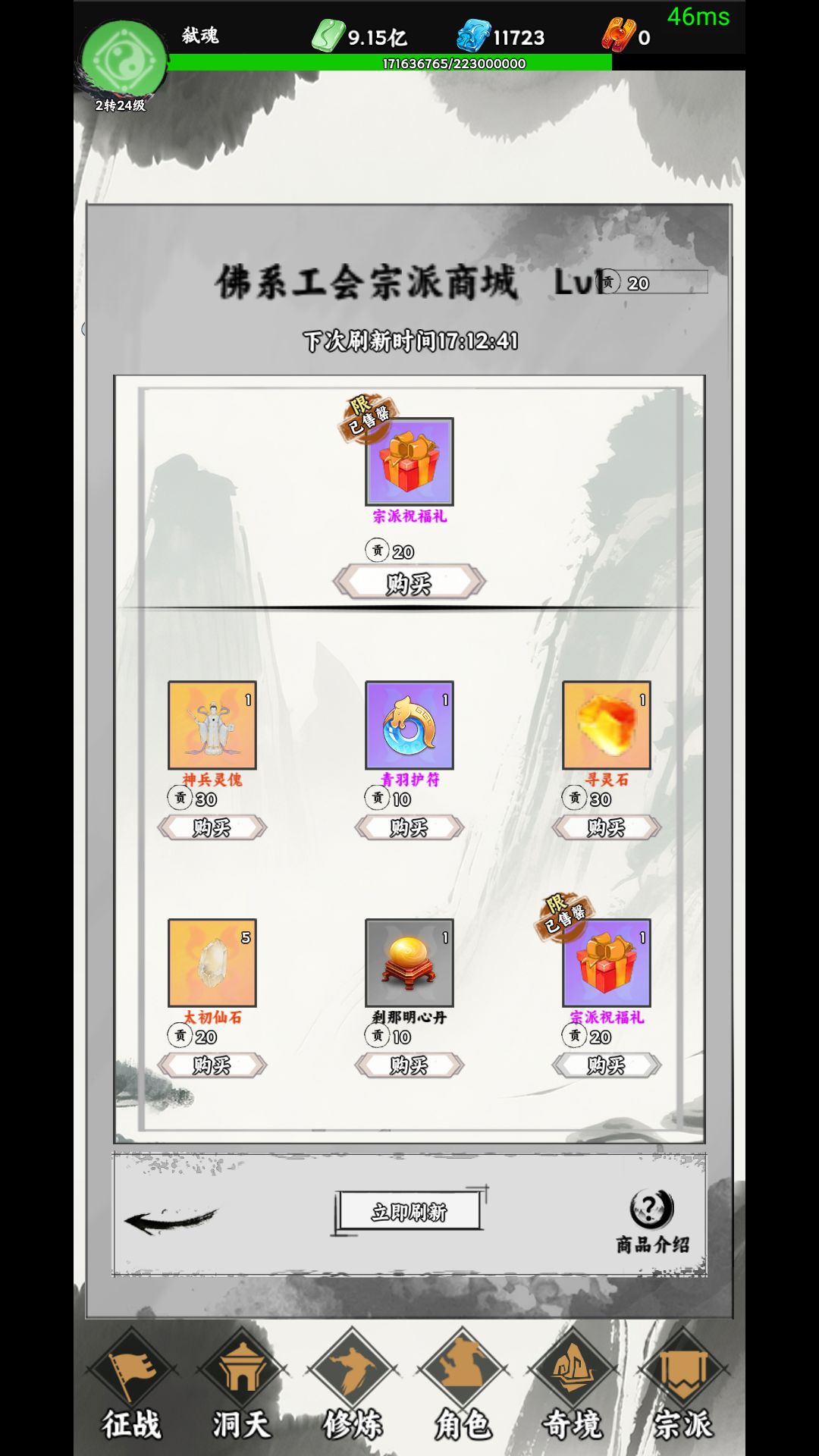 最后是宗派 建议早些找个宗派加入 因为 每天一次的宗派祝福礼包 很香