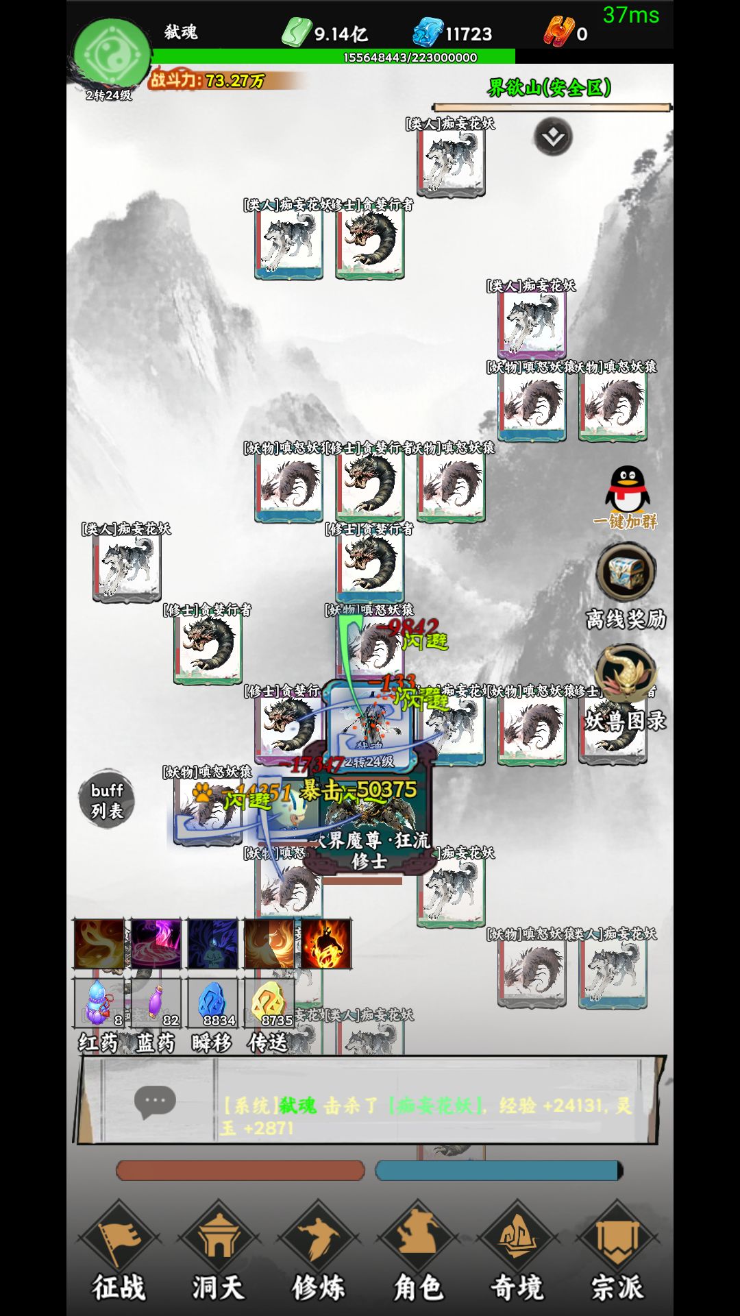 右侧中间有QQ加群按钮 离线奖励按钮 妖兽图录按钮 前两个顾名思义了 说一下妖兽图录