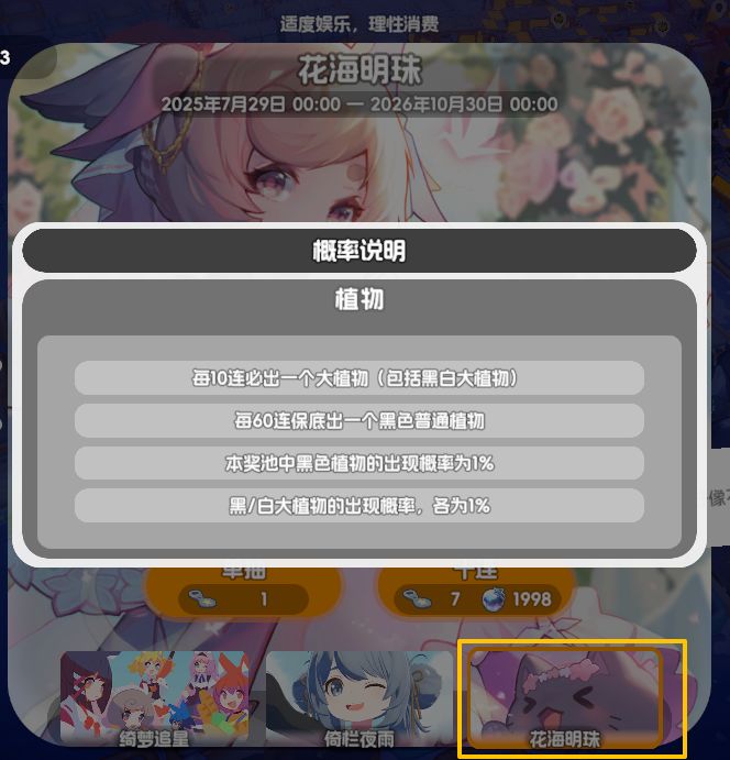 2、如果你已经在沙岛-渔岛这个阶段,猫娘够用的情况下,可以抽一轮花池(指抽到黑花就停手)
