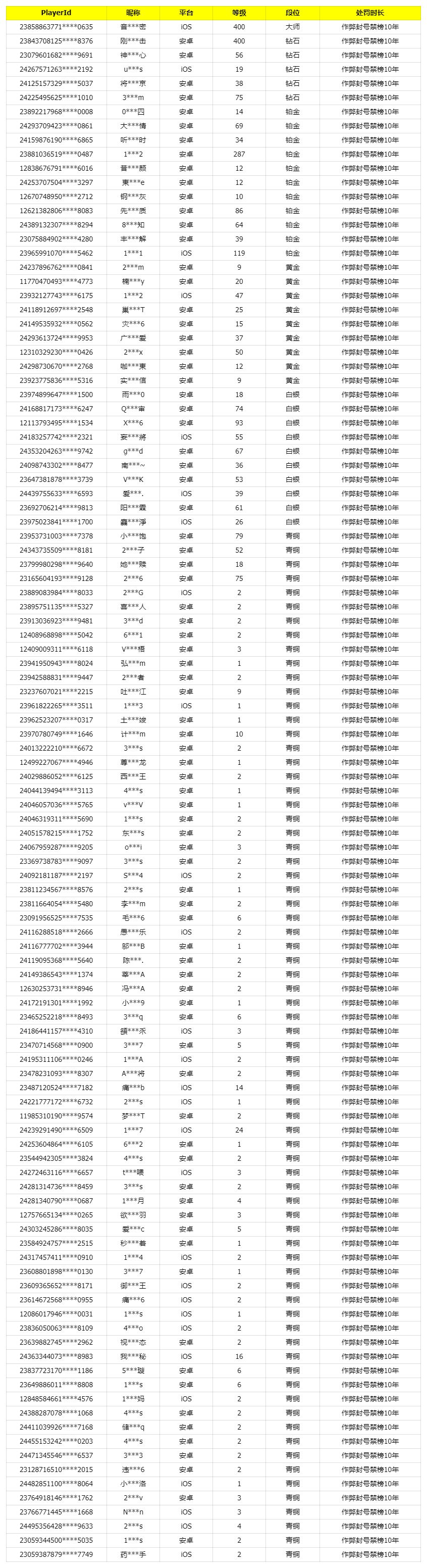 我是瘦普,最新外挂处罚公告来了。