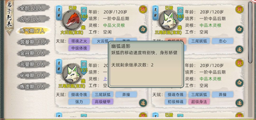 十月怀胎后(现实50分钟),可点击灵胎诞生婴儿为弟子,灵胎弟子会随机继承父母的天赋。