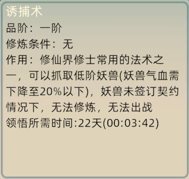 首先先学习技能诱捕术,诱捕术可捕获比自己境界低并血量低下的妖兽作为弟子,但注意一定要混沌珠之内还有弟子空间,不然是抓不到的。