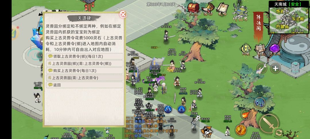 然后去天道碑,点击灵兽园