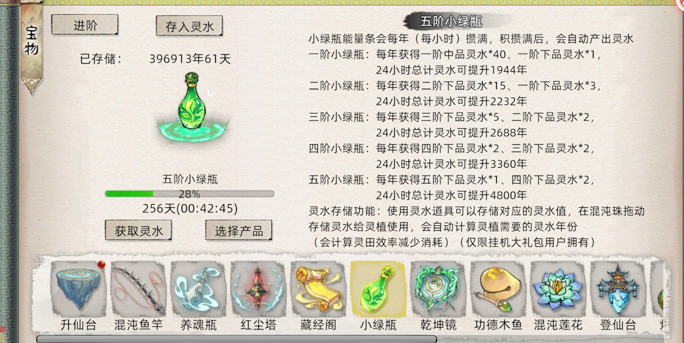 红框灵水按钮√选后,会在催熟草药时自动计算所须量一次性成熟。默认为关闭,须要到设置→游戏设置→灵田显示快捷浇水打开开关。催熟时以瓶为单位进行消耗,哪怕是只催熟一年也会消耗整瓶,而橙框则是168礼包的特殊催熟功能,最小催熟单位为天,可以更好地控制催熟对灵液的消耗。
