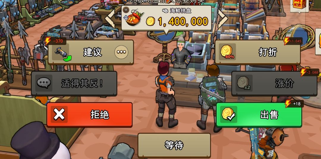 2.前中期阶段(一般是有一到两队合格的幸存者队伍可以无伤打初级副本,工匠基本解锁,货架资源箱子柜台等都至少六级以上)这个时候好感度也差不多有一些了,制作的物品基础价格也更高,就可以适当的翻倍卖给NPC获取收益,也可以继续做更高级垫子挂市场,但是可能售卖速度就没那么快了。