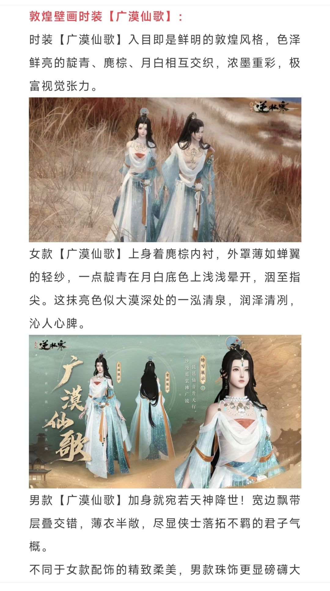 逆水寒手游敦煌主题时装外观,联动【敦煌文旅】,敦煌壁画【广漠仙歌】,九色鹿时装【云鹿鸣沙】