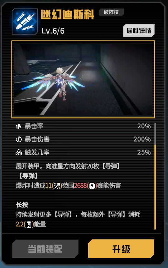 发射飞弹,造成范围的赛能伤害,长按可耗能持续发射飞弹