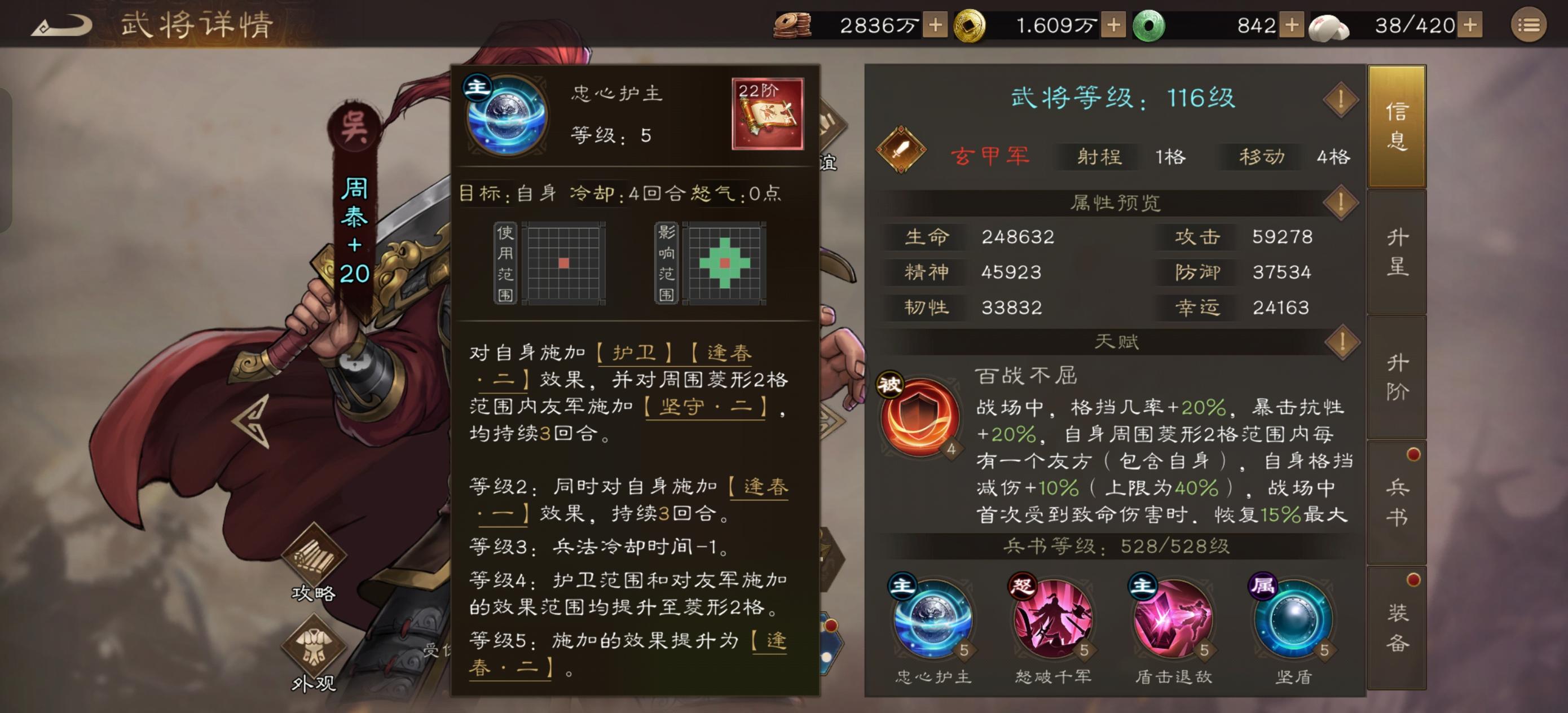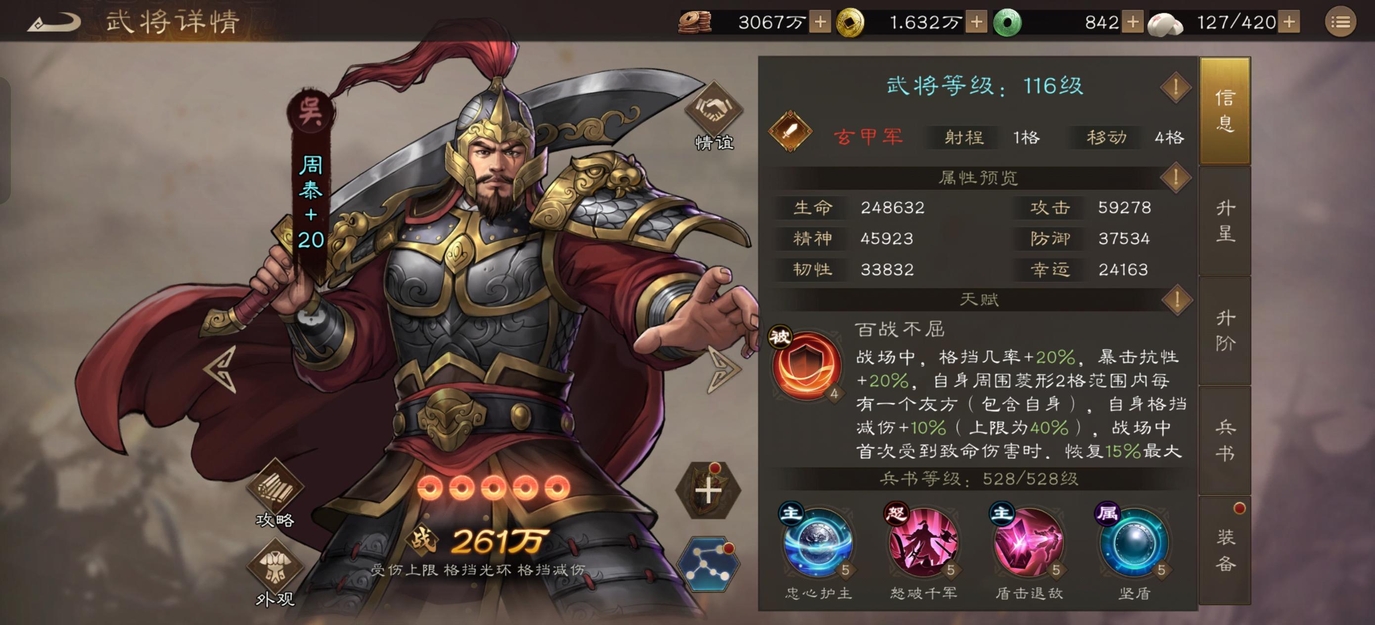 周泰在新三曹里是个特别能抗揍的武将,天赋和技能都让他像个“打不死的肉盾”,保护队友一流。