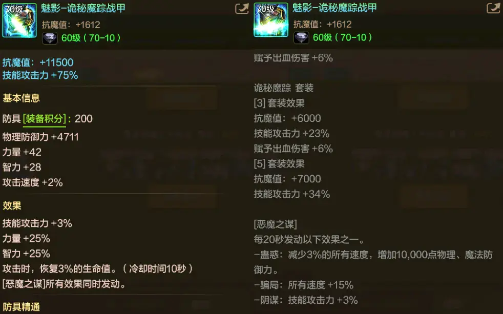 但实际上呢,即便你控制了蓝量、即便你一直处于技攻加成状态下,也依旧打不过刚魂套,更别说去和镇魂曲、真学套一较高下了!再然后就是“三傻”诡秘魔踪套,相对来说,这套装备在轻甲三兄弟中勉强算个“人”。